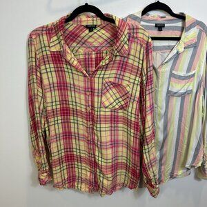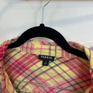 Lot Of 2 Torrid 1 1X Lizzie Button-Up Yellow & Pink Plaid Top Blouse