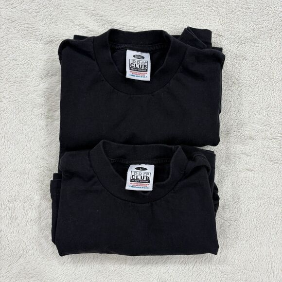 Lot Of 2 VTG Pro Club T Shirts Men's Large Black Crew Blank Heavyweight USA