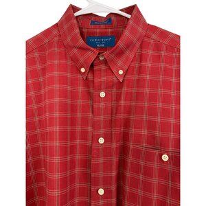 These vintage Towncraft shirts capture a classic 90s charm. The red plaid pattern and blue chambray fabric evoke a timeless, versatile appeal.