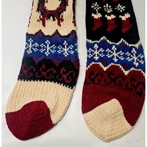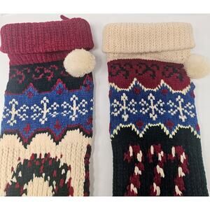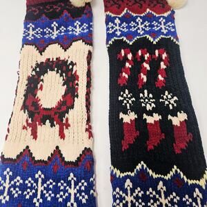 Lot Of 2 Vintage 80's Knit Sweater Christmas Stocking With Pom Pom 22"