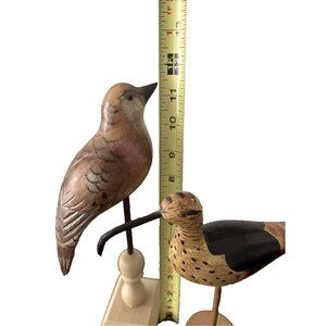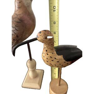 Lot Of 2 Vintage Hand Carved & Hand Painted Wooden Birds On Stands-11.5” & 8”