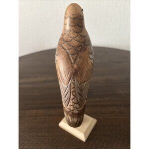 This product is a set of two vintage hand carved and hand painted wooden birds on stands. The birds are intricately designed and colorful, standing at 11.5 inches and 8 inches tall. Made in China, these figurines are perfect for any room and would make a unique and charming addition to any collection of decorative sculptures and figurines.