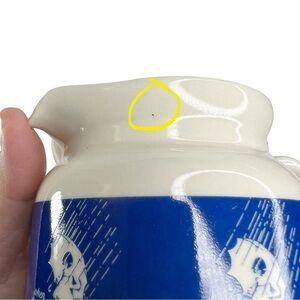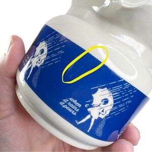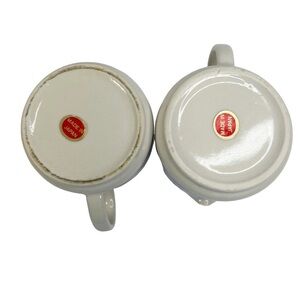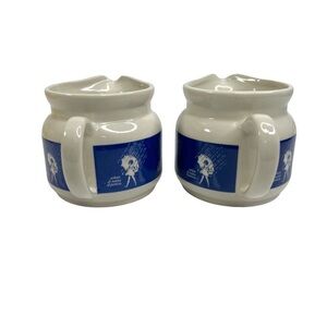 Lot Of 2 Vintage Morton Salt Creamer Jugs Pitchers. In gently preowned condition with no chips or cracks but there are a few factory made marks within the wraparound print and 2 other marks within the ceramic material. Made In Japan stickers on the bottoms. Features the Morton Salt Girl and the phrase “when it rains, it pours”.