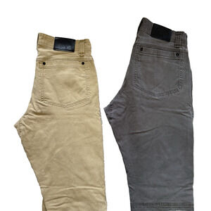 One tan khaki and one gray pair