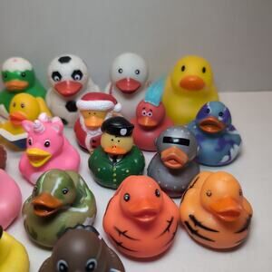 Lot Of 24 Rubber Ducks Jeep Ducking Miscellaneous Holiday Sport Glitter Party