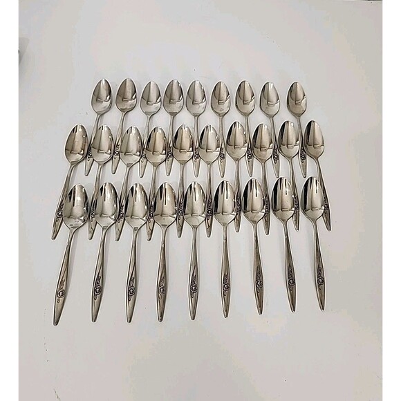 Lot Of 28 Oneidacraft Deluxe Stainless Steel Teaspoons Lasting Rose Pattern