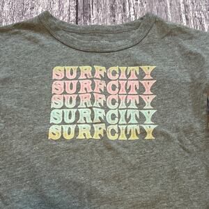 Short Sleeved Gray T-shirt - says 'Surf City' in Rainbow Colors