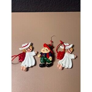 Add some western charm to your holiday decor with this lot of 3 Christmas Expressions ceramic cowboy hanging ornaments. Each ornament features a charming bear shape and a multicolor pattern with intricate character details. Perfect for adults, these small 4 inch angels are a great addition to any Christmas collection.
