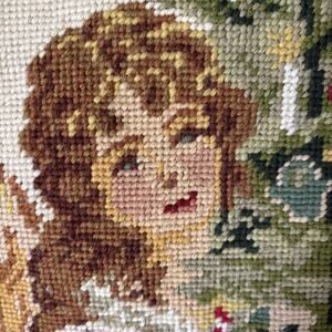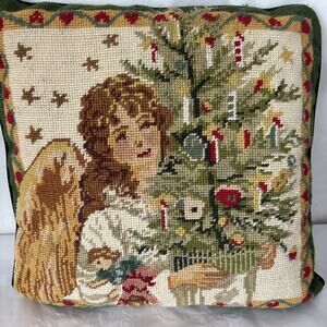 Lot Of 3 Christmas Vintage Wool Needlepoint Pillows Velvet Back Zipper Angels