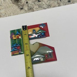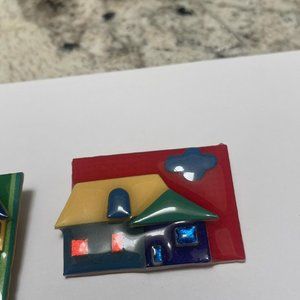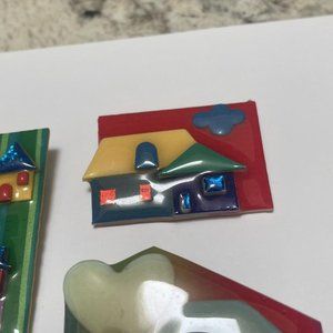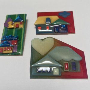 Lot Of 3 Collectible Signed House Pins By Lucinda Brooch Pins Handcrafted