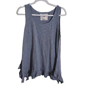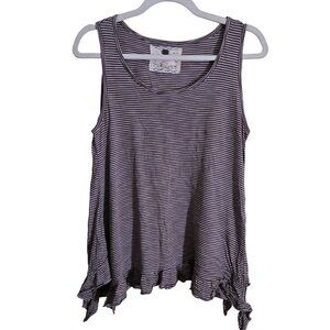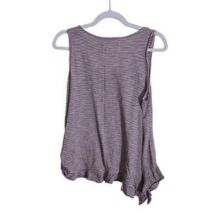 Lot Of 3 Cupio Sleeveless Ruffle Assymetric Hem Jersey Size M. Pit to pit 22", shoulder to hem 28", Pink/ Blue/ Brown Striped, Scoop Neck, Flowy Soft Cotton Blend, Great Everyday Piece. Good Pre-Owned Condition