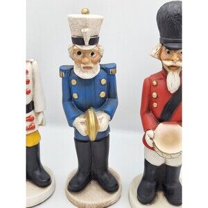 The product is a set of three drummer soldier figures by Universal Statuary, manufactured in 1990. The figurines are multicolored and have a musical theme, perfect for adding a festive touch to any room, especially during the Christmas season. Made in the United States, these unique collectibles would make a great addition to any decor collection, especially for music enthusiasts or collectors of sculptures and figurines.