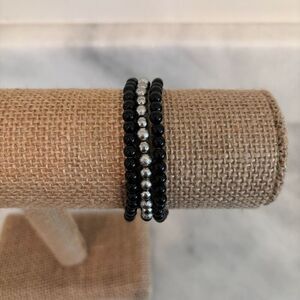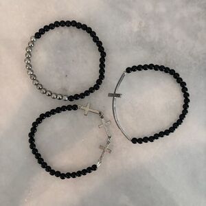 Lot Of 3 Francesca's Collections Beaded Silver-tone Cross Elastic Bracelet Set Black OS