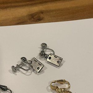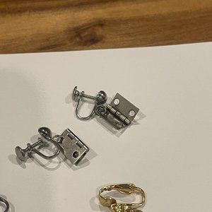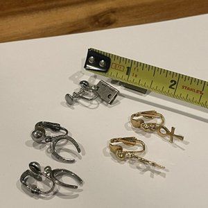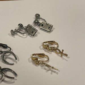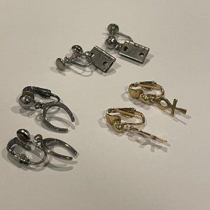 Lot Of 3 Fun Novelty Clip On Screw On Earrings Dangle- Door Hinge Horseshoe Etc