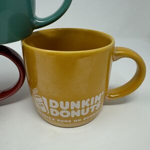 Lot Of 3 Iridescent Orange Red Teal 2014 Dunkin' Donuts Coffee Mugs Cups. Condition is Used. Shipped with USPS Priority Mail.