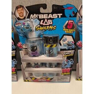 The Lot Of 3 Mr Beast Lab Swarms Lab Pack 5 Micro Panther with Ultra Rare Panther is a playset inspired by the popular YouTube personality Mr. Beast. Made of plastic with a multicolor design, this set includes various characters from the Mr. Beast Lab franchise. With a grade of 100 and manufactured in 2024, this action figure playset is a must-have for fans of Mr. Beast and collectors alike.