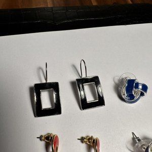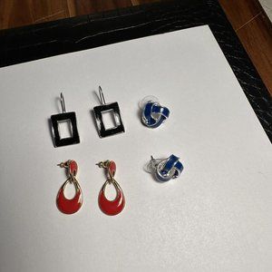Lot Of 3 Pierced Earrings - Dangle / Stud - Enamel - Black Red Blue