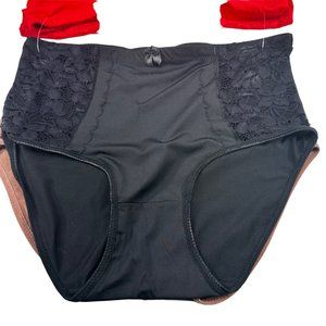 Lot Of 3 Pink K-Mart Women's Size XL Panty Brief Light Shaper Lace On Front Side 1 Red 1 Black 1 Brown New Without Tags