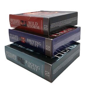 The product is a lot of 3 audio CD audiobooks from the Richard Castle Nikki Heat series, based on the CASTLE TV series. The 2010s-era publications are from abc studios, providing an immersive listening experience for fans of crime fiction. Included in this lot is: * Raging Heat (2014) * Driving Heat (2015) * Wild Storm (A Derrick Storm Thriller, 2014) All disks are in very good condition. Boxes show wear.