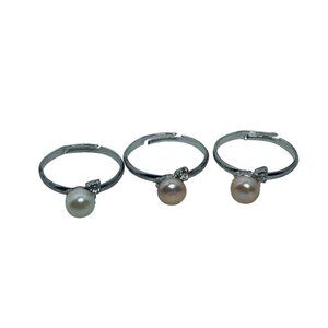 These silver-tone adjustable rings feature a classic design with faux pearls and rhinestone detailing, ideal for elegant and versatile accessorizing.