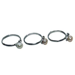 Lot Of 3 Silver Tone Adjustable Rings W/ Faux Pearls & Rhinestone Accents (R433)