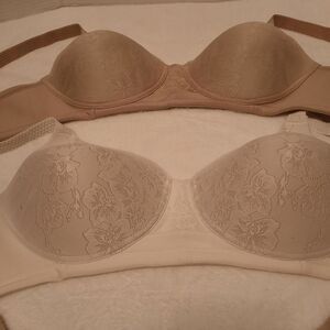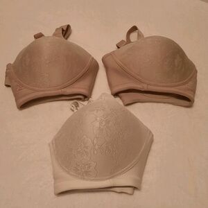 Lot Of 3 Vanity Fair beauty back bra beige White 36C 71380 Wireless Lace Overlay