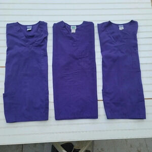 Lot Of 3 Womens Scrub Uniform Tops Solid Purple Cherokee WS GEAR Sz M