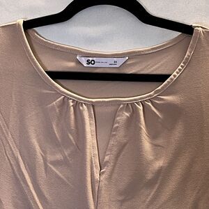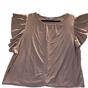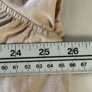 Beige W/ Pink Hues Round V-neck Ruffled Sleeves
