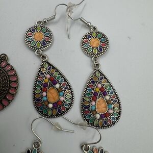 Lot Of 4 Boho Drop Earrings Pierced Colorful Teardrop Stones Tribal