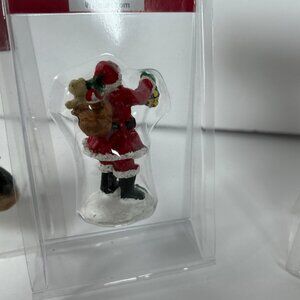 This vintage set of four Christmas village figurines features a charming church sign, Santa, people, and an adorable dog. Perfect for adding nostalgic charm and character to your holiday village display.