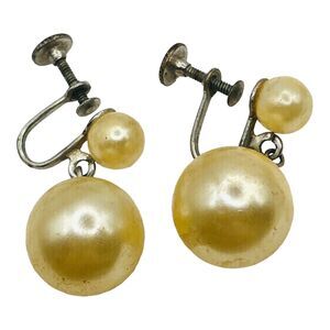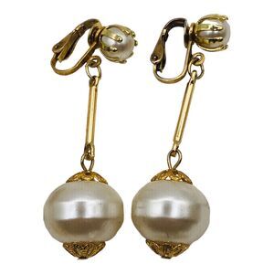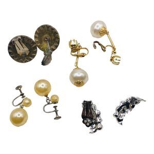 Lot Of 4 Costume Earrings Chunky Dangle Faux Pearl Rhinestones Clip Screw Back