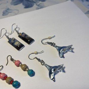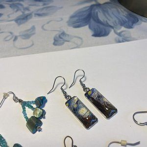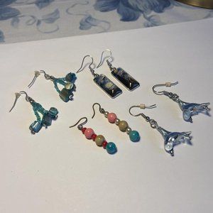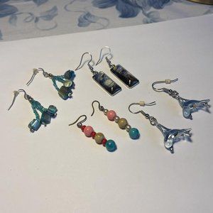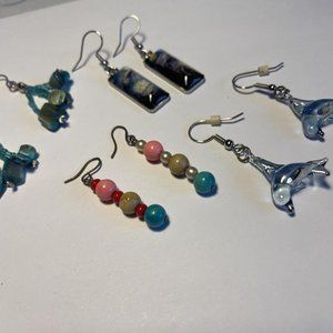 Lot Of 4 Costume Earrings Pierced Beaded Dangle - Bead With Blue Tones