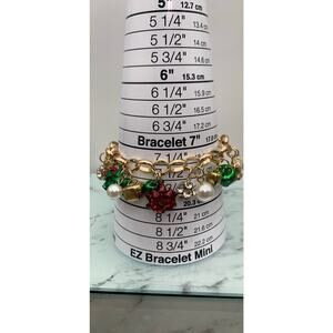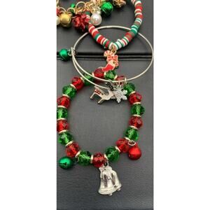 This product is a set of four different Christmas-themed bracelets, each featuring a different style such as chain, charm, stretch, and beaded. The bracelets are multicolored and adorned with various Christmas-themed charms and beads, making them a festive and stylish accessory for the holiday season. Perfect for adding a touch of holiday cheer to any outfit, these bracelets are a fun and versatile addition to any jewelry collection.