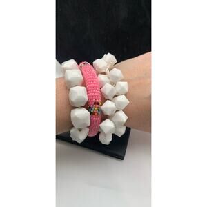 This lot includes four colorful beaded bracelets perfect for the spring and summer seasons. One bracelet features fun turtle charms and are designed in a stretchy style for easy wearing. With a beachy and animal theme, these bracelets add a playful touch to any outfit, making them a great choice for those looking to add a touch of fun to their accessories collection.
