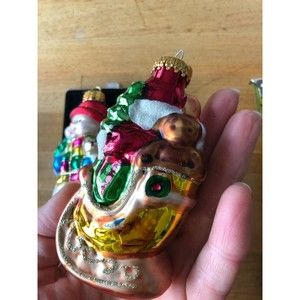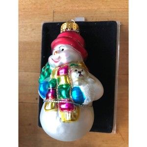 Lot Of 4 Glass Christmas Ornaments Snowman Teddy Bear Blue Marker