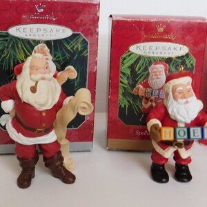 Mixed lot of 4 Hallmark Santa ornaments from 1989 - 1999 in box. Ornaments are molded acrylic plastic.