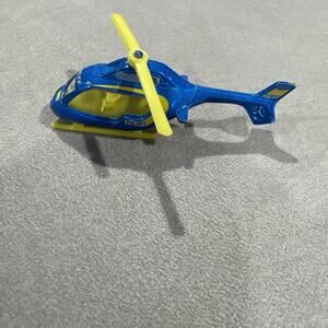 Fast Lane EM Helicopter toy, a blue police diecast model.