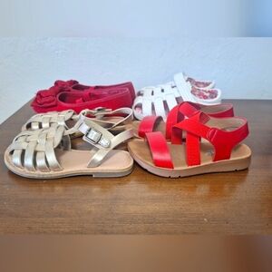 Lot Of 4 Red White Gold Babys Girls Toddler Sandals Shoes Size 7