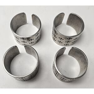 Lot Of 4 Silver Etched Fleur-De-Lis Metal Napkin Rings Handcrafted StJames Art Festival