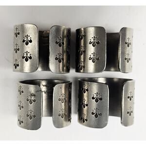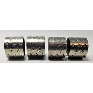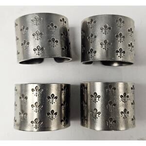 Lot Of 4 Silver Etched Fleur-De-Lis Metal Napkin Rings Handcrafted StJames Art F