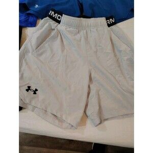 This product is a lot of 4 Under Armour fitted athletic drawstring shorts in men's size small. These solid multicolor shorts feature a pull-on closure, are made of polyester and elastane blended fabric, and have a drawstring for a custom fit. They are designed for gym, training, basketball, and running activities, showcasing the Under Armour logo, making them a stylish and functional addition to any active wardrobe. Machine washable and with a regular fit, these shorts are perfect for any occasion requiring activewear.