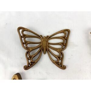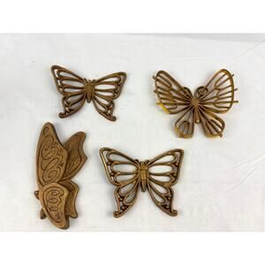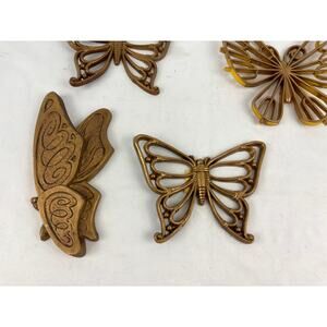 Lot Of 4 VTG Faux Wood Butterflies Homco Wicker Wall Decor Plaques