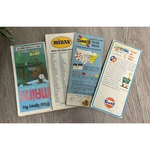 Lot Of 4 Vintage 1960s-70s New England Road Maps Gulf Sunoco Midas Maine Boston