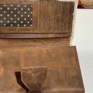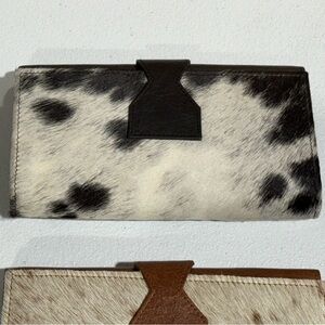This stunning accessory is made from leather and features hair-on cowhide. For convenience, this women's accessory offers a various slots and compartments for storage of various items.