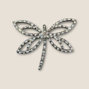A versatile collection of five dragonfly brooches featuring rhinestones and enamel accents. Add a touch of elegance to outfits or accessories.