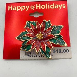 Lot Of 5 Holiday Brooch Pins Vintage To Modern Festive Cat Penguin Poinsettia