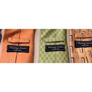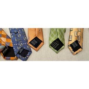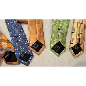 This lot includes 5 high-quality silk neck ties from top brands like Meeting Street, Michael Kors, and Vineyard Vines. The ties feature a variety of geometric patterns in vibrant colors, making them perfect for adding a pop of fun to any outfit. The ties are 100% silk and have a textured fabric type, with beautiful woven accents for a stylish look. With a length of 61 inches and an adjustable fit, these ties are ideal for preppy men looking to elevate their wardrobe. Made in the United States, these ties offer a touch of sophistication and personality.