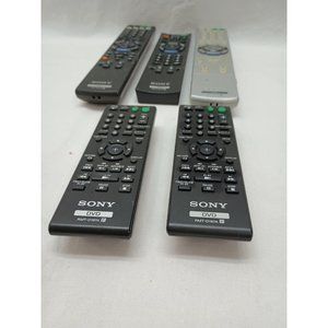 This lot includes five Sony remote controls that are compatible with Sony devices. Each remote control is wireless and has a silver color. The model number for each remote control is RMT-D203A. These remote controls are perfect for someone who needs multiple remotes for different rooms or devices. They are pre-owned and have some minor wear and tear, but all buttons and features are fully functional.