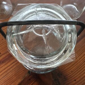 Lot of 5 vintage glass with wire bales and glass lids canning jars. Three with round jars two with square jars. Three do not have gaskets, to do have gaskets. They are all in good condition. Please see photos for details. One says 444 on the bottom, one has a 5643, one has a 3 K 643, One says K 1776 3 and one says K 18817. One has a stick on label that can be removed. Please see photos for details, they could use a good scrubbing. They are all about 5 1/2 inches tall by about 2 1/2 inches wide.