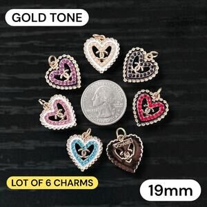 Lot Of 6 CC Heart Gold Tone Zipper Pull Button Charms 19mm